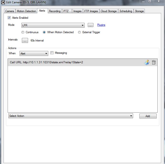 In parallel, I had a surveillance platform (iSpy) Agent DVR Feature List running on a VM, with an ANPR plugin that white listed car registration plates. - On detection of a white listed plate, the iSpy ANPR plugin would generate a HTTP URL string / command? and this would pulse the corresponding relay in the gate controller and the gate would open.