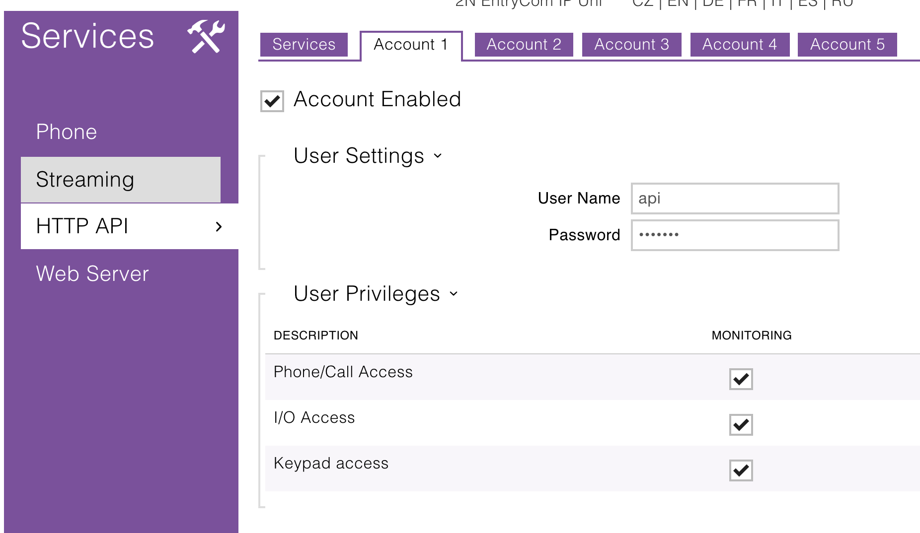 Which user do I need to put in the thing configuration? The UserID of logging into the Web server or this HTTP API account (I tried both without success) ?