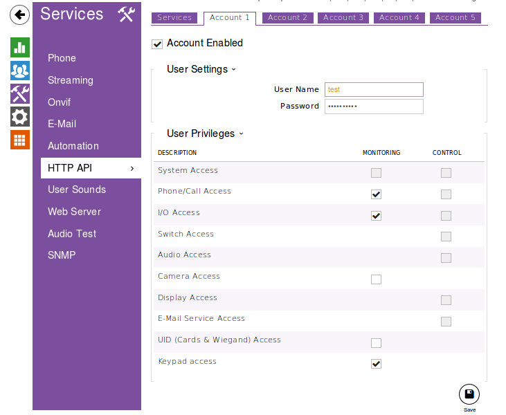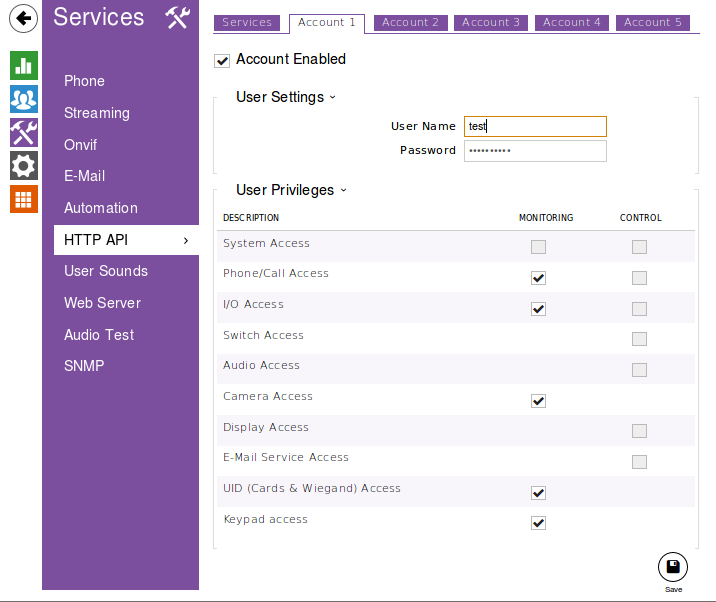 1 - I set the Services-HTTP API section of my device in this way