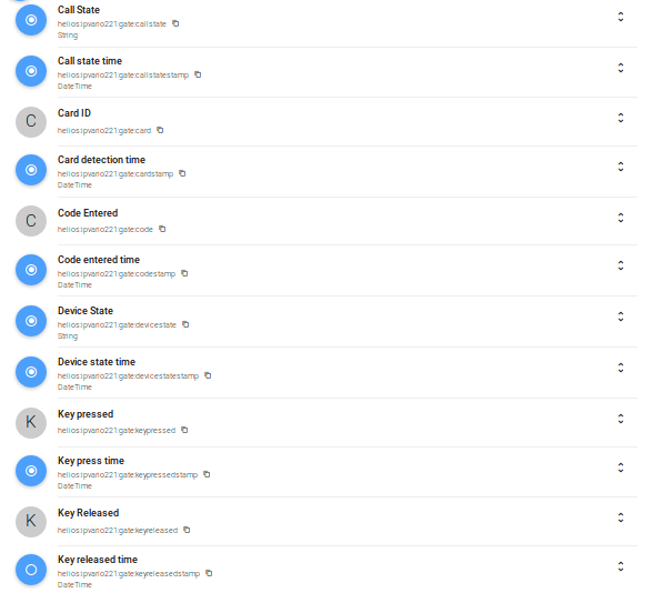 the channels those don’t provide information to my items are keypressed, keyreleased, all channels related to card (my Helios has no card reader), all channels related to code (my Helios has no keypad), all channels related to audiolooptest (my Helios has no Gold license), all channels related to motion (my Helios has no video camera), all channels related to noise and all channels related to devicestate.