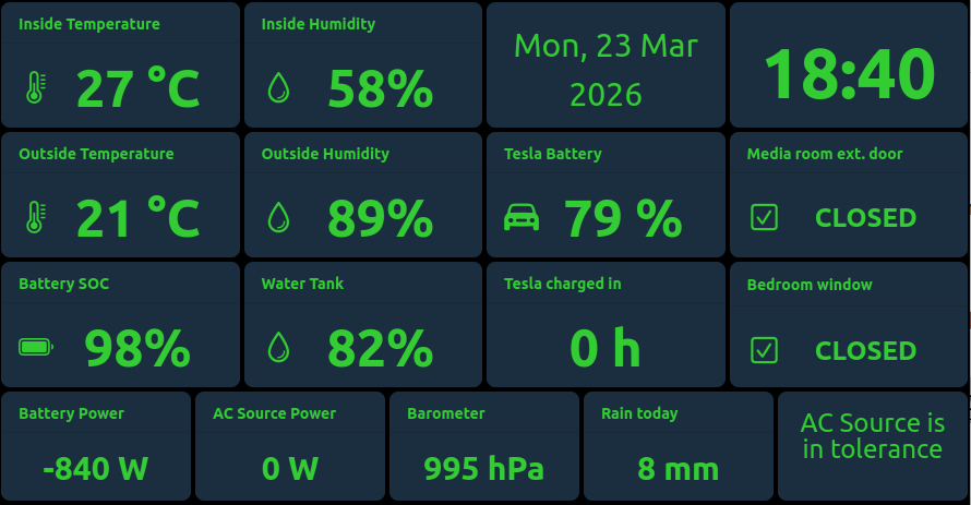 You can get MainUI to display information in quite flexible ways, using custom widgets etc., but I personally think there is much to be desired on the layout front. It’s dictated by Framework7, which MainUI is built on top of, who thinks that “mobile UIs”, especially Google’s, is “all that matters”. So, they don’t make it easy if you don’t like this “minimalistic” design. You can do pretty much anything using custom CSS etc., but it feels like you have to “fight it” instead of “work with it” IMO.