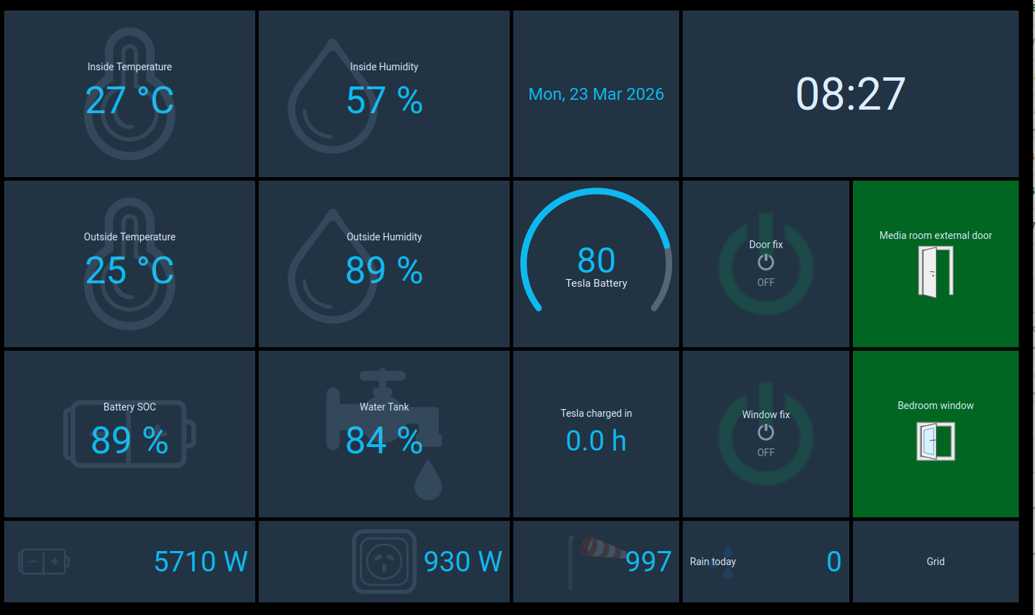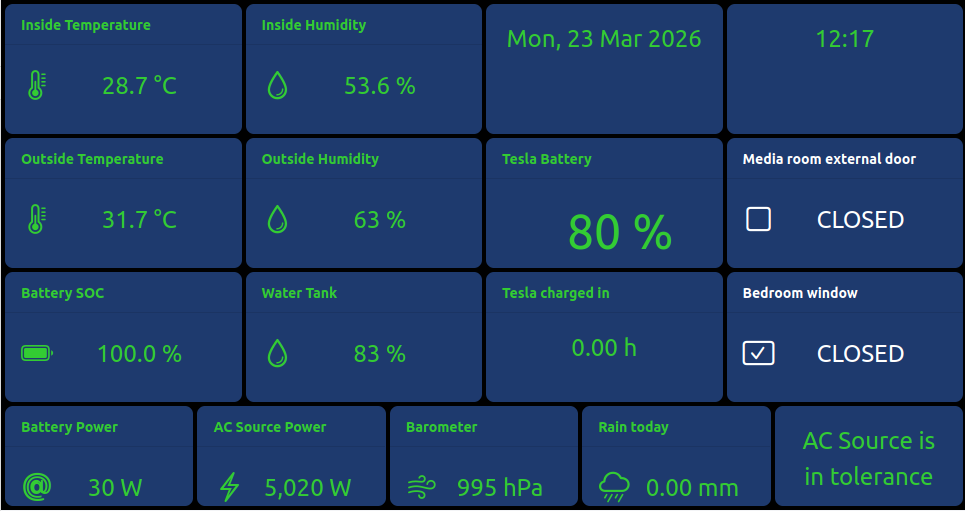 I have one Android tablet on the living room wall to see and control some data, but mostly we are using speech control through Alexa and the Matter binding.