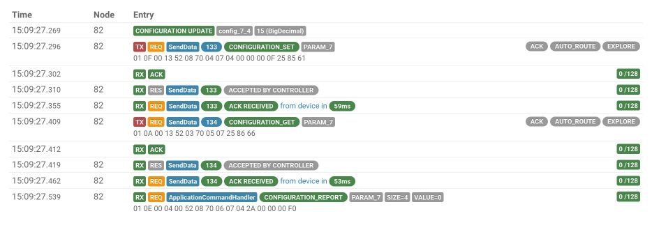 2020-03-05 15:09:27.269 [DEBUG] [ding.zwave.handler.ZWaveThingHandler] - NODE 82: Configuration update set config_7_4 to 15 (BigDecimal)