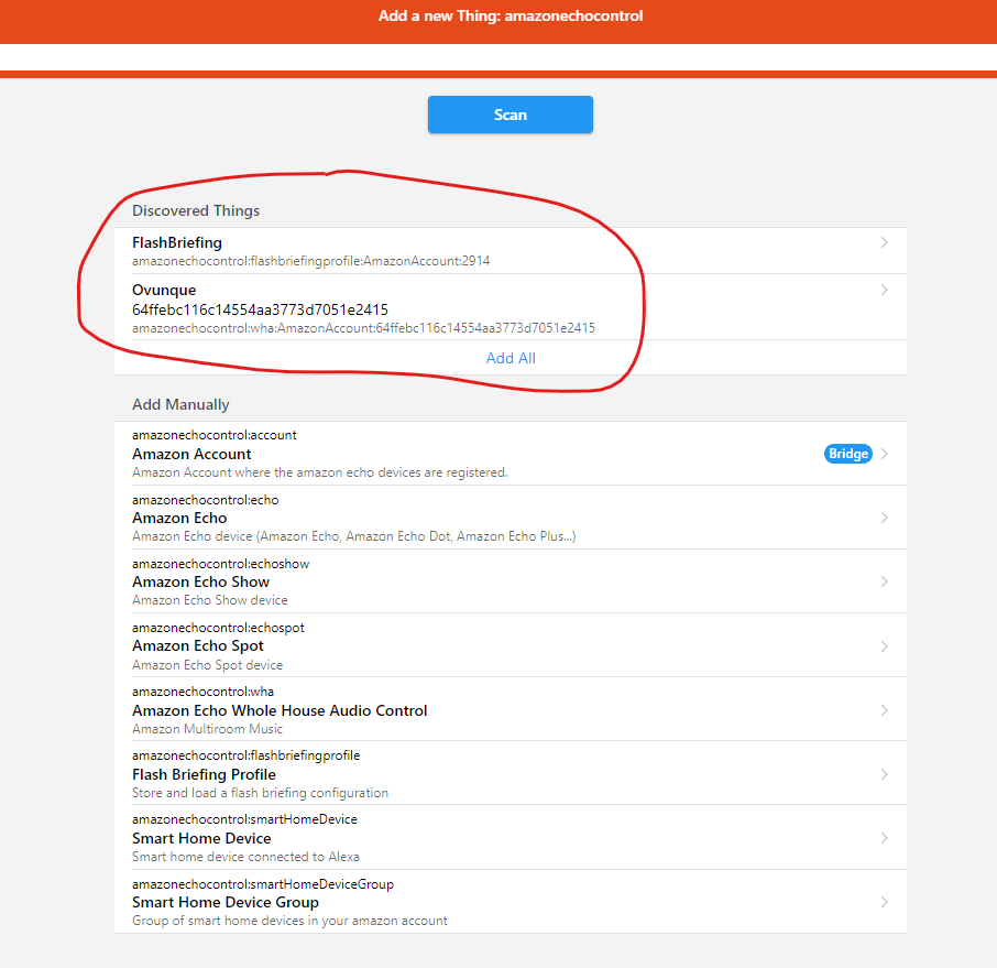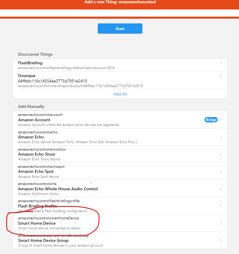 The device is not found when searching in Openhab.