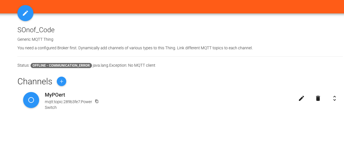 I have the Topic of the sonoff that I use Sonoff_BBB and I am able to add this as item and thing via the