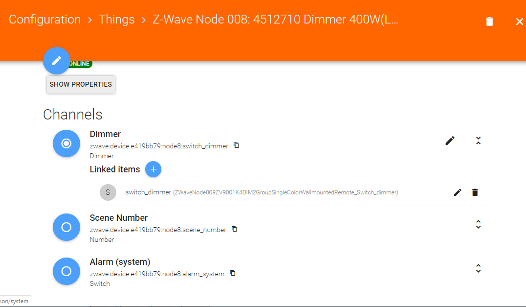 When I link the Dimming pill to the In–wall switch,I can controll the light through OH.