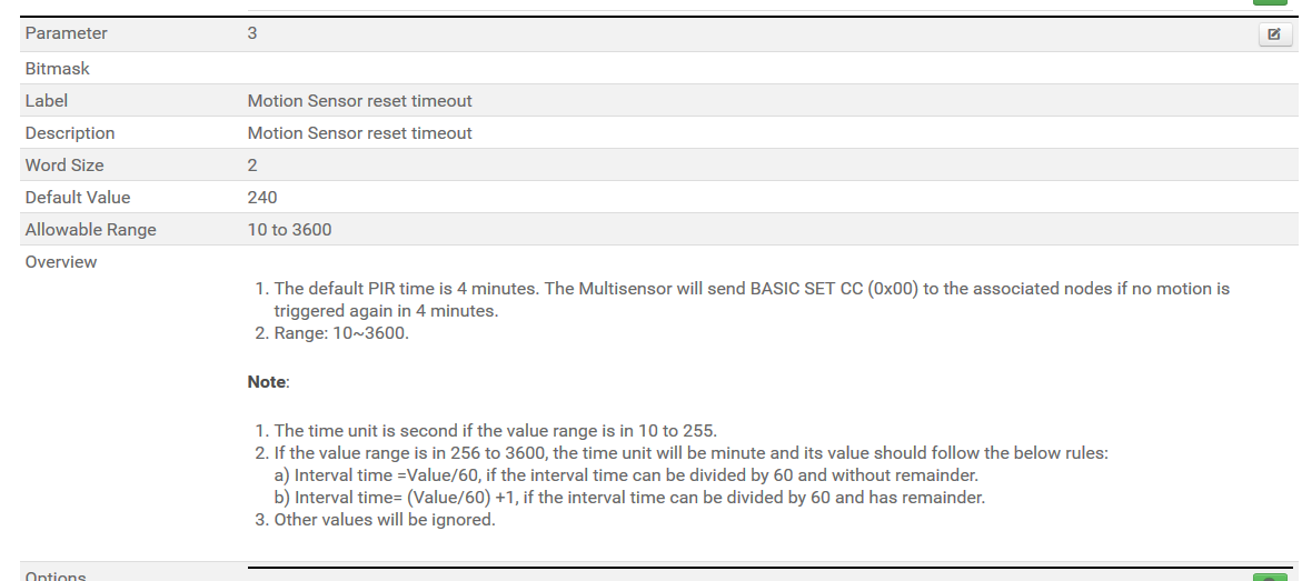 This device has been in the database since about 18 month, including your device type and id and the parameter “Motion Sensor reset timeout”