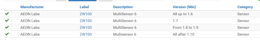 Also, when adding these after discovery using the zwave binding, I don’t recall being given a choice as to which firmware was on the Multisensor which would allow selecting one of the choices you point out when installing the thing.