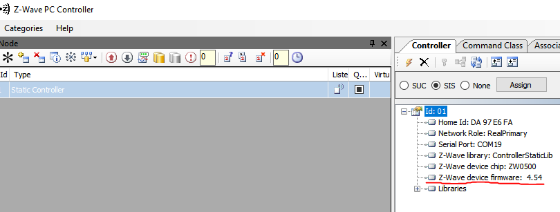 | Version 1 | Z-Stick Gen5 | 1.00 | v6.51.02 | 3.95 | no | Not without unpowered USB Adapter |