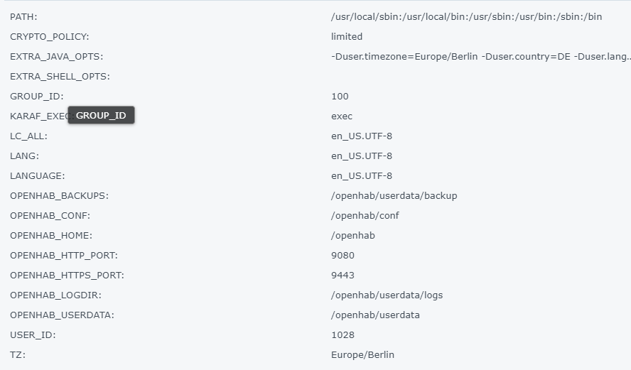 I’m running openHAB 4.0.2(now 4.0.3) on a Synology NAS DS716 in a docker container.