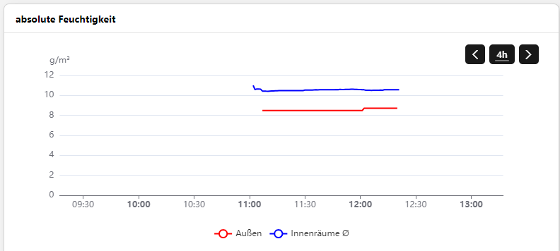 2023-10-15 15:33:04.121 [INFO ] [nhab.automation.script.file.klima.js] - Outdoor TemperaturIst:9.6, LuftfeuchteRelativ:72, Taupunkt:4.8, LuftfeuchteAbsolut 6.6