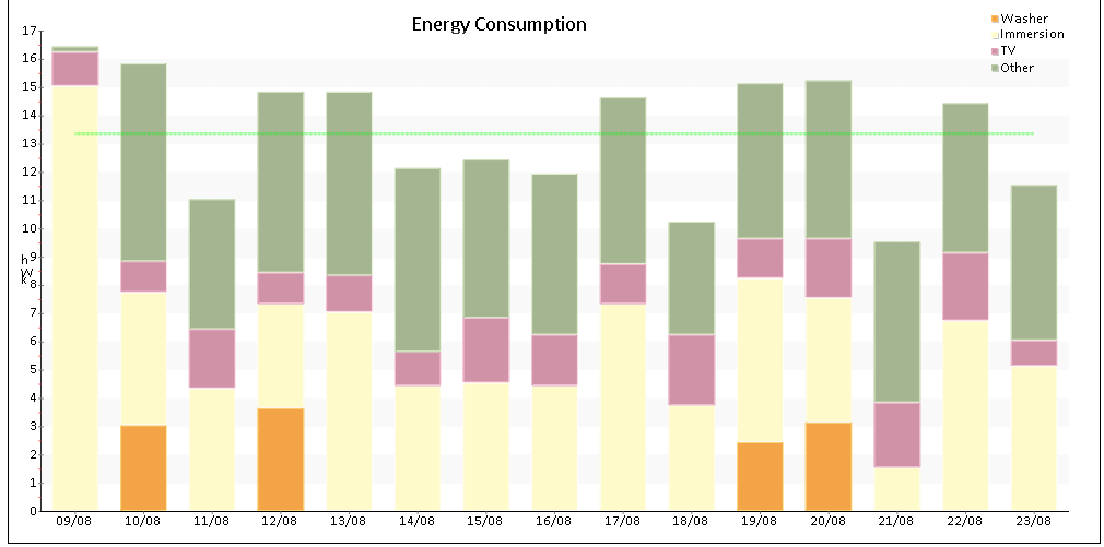 I have various energy measurement devices - PZEM, Sonoff POW and TP-LinkHS110. I wanted to produce a chart which showed the consumption of the devices over the last moth and also compare it to my target consumption.
