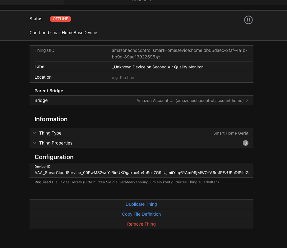 can you describe when “everything works again” exactly means? I am using the Air Quality Monitor from Amazon in Germany. The device is detected but I get “Can’t find smartHomeBaseDevice“ when I add the Thing. Does also Air Quality Monitors work for you?