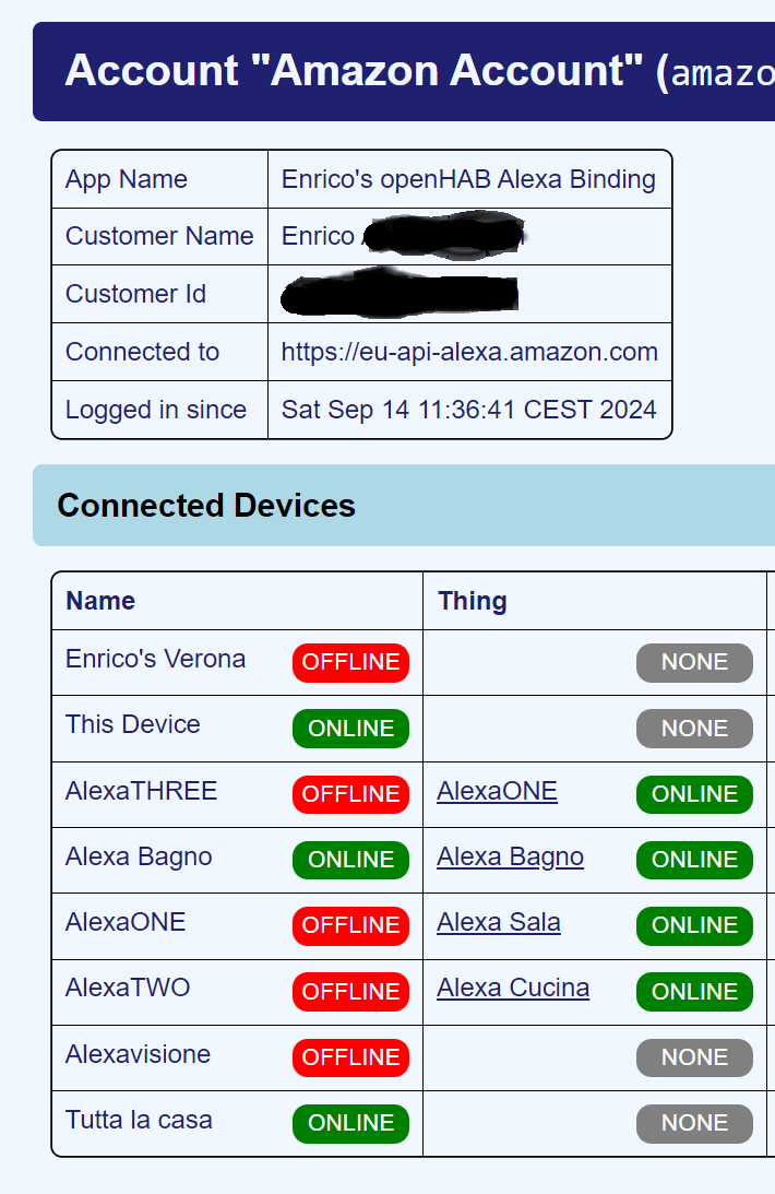 2024-09-26 08:08:26.303 [INFO ] [ab.event.ThingStatusInfoChangedEvent] - Thing 'amazonechocontrol:echo:binder:echoEingang' changed from ONLINE to OFFLINE (BRIDGE_OFFLINE)
