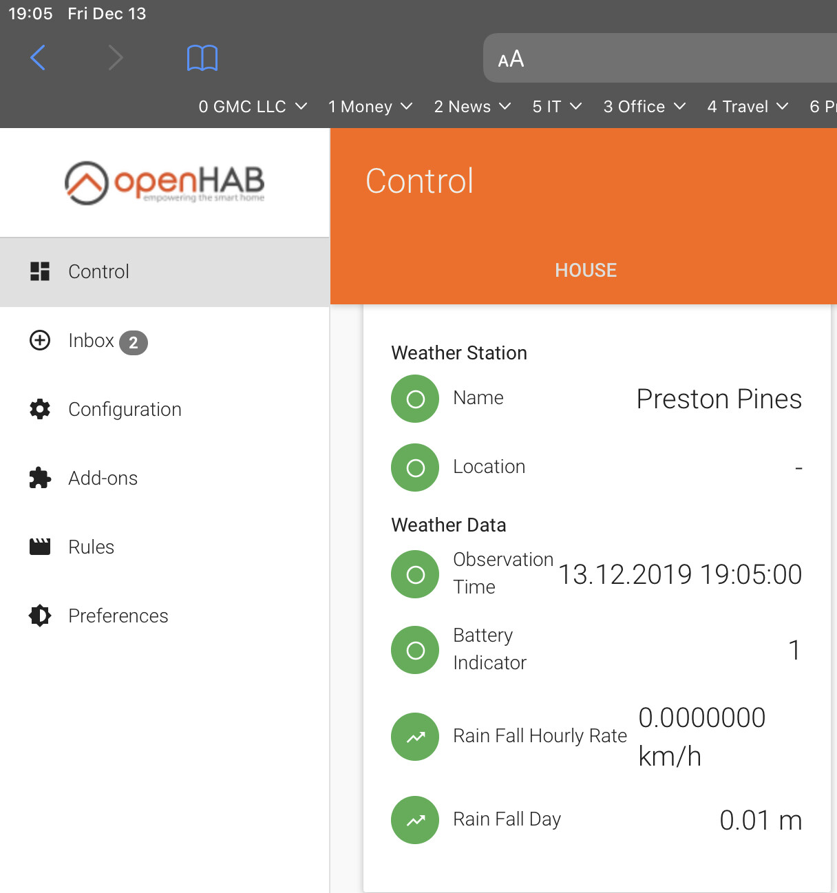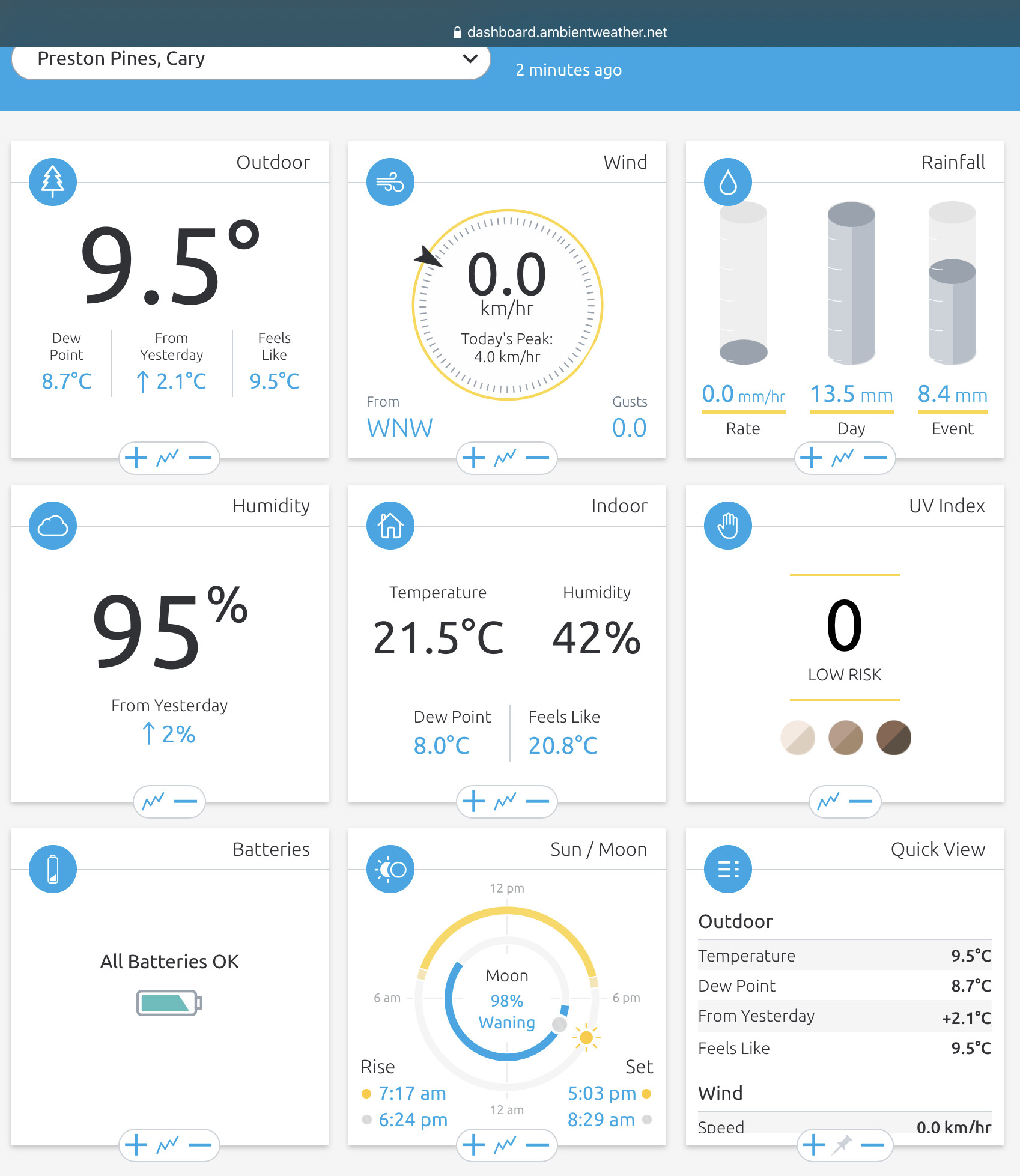 The values in the Ambient Weather dashboard: