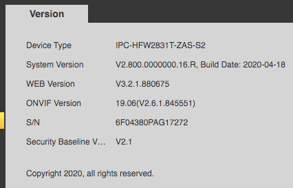 For anyone who finds this. I’ve confirmed this also works for Dahua Cameras (at least the version shown). Note: There’s an odd caveat with this firmware, when selecting the storage destination for Snapshots, it will not let you mix and match between NAS,FTP, or Local. It’s all one or the other. This camera has a SD card, so I set it to a non enabled/existent FTP server.
