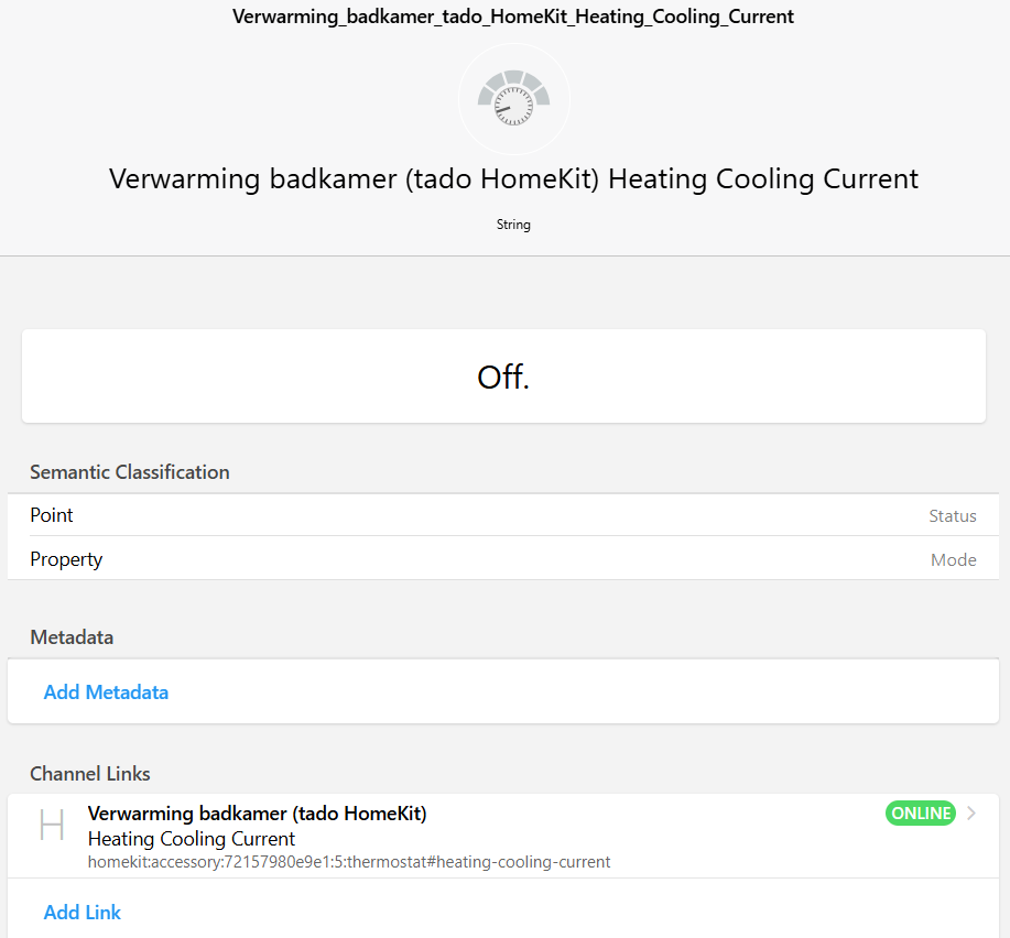 2025-11-13 08:31:15.627 [DEBUG] [rnal.handler.HomekitAccessoryHandler] - homekit:accessory:8e2a9e4bff1:73418603 updated with 2 channels (of which 2 polled, 2 evented), 5 properties, label: 'null', equipment tag: 'null'