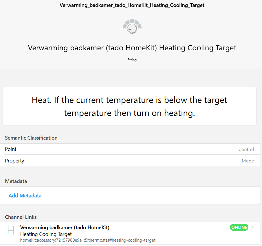 Some more testing is probably needed. But if I set the valve to SCHEDULE, I still can’t control the target temperature with the HomeKit binding. That’s all I could test now; time is lacking.