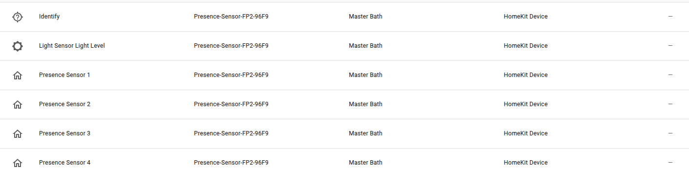 For what it’s worth I think the duplicate channels refers to the fact that you can configure different presense zones with the FP2’s and I just randomly set this one up with two zones for testing. From my experience with the HA homekit configs that means that 3 presences channels are produced, 1 general for the entire detection area of the device and then 1 for each zone within that area.