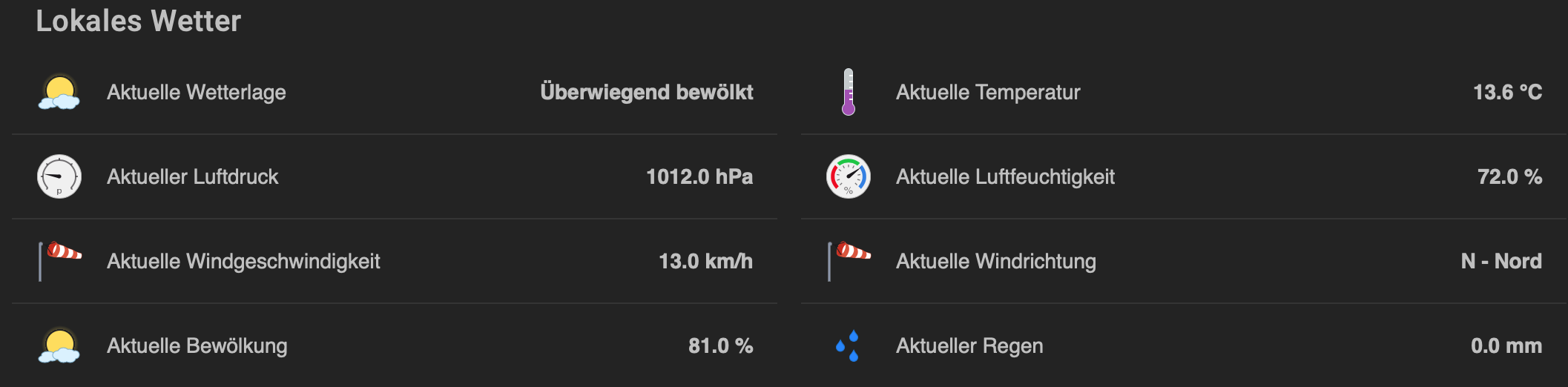 Furthermore yesterday was rain, the OpenWeatherMap page showed rain 1.2mm but my system didnāt. I donāt get it :-D.