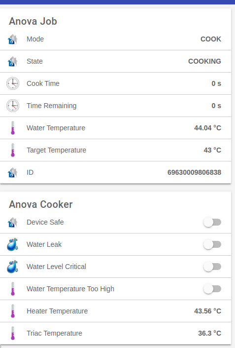 I wanted to add my anova sous vide stick (WiFi Version) status to openhab. Therefor we need to get the information from the (undocumented) API and parse it into openhab.