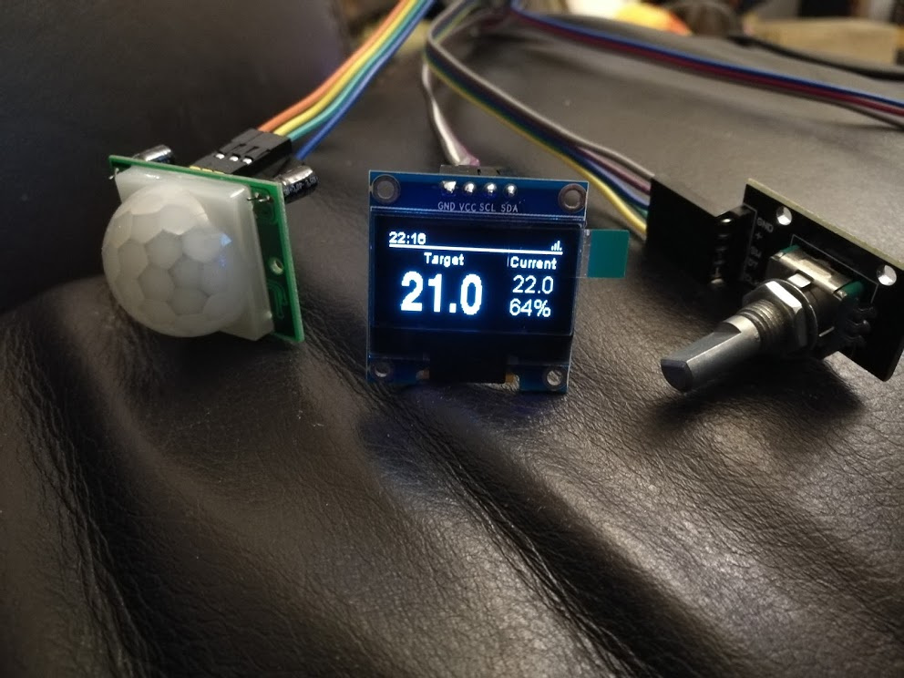 I am using an ESP8266 and DHT22 - my plan is to add a rotary encoder, PIR and OLED display to each one, and have this be used for displaying current temperature, setting the new temperature, and used for other purposes - controlling music, displaying weather information etc.