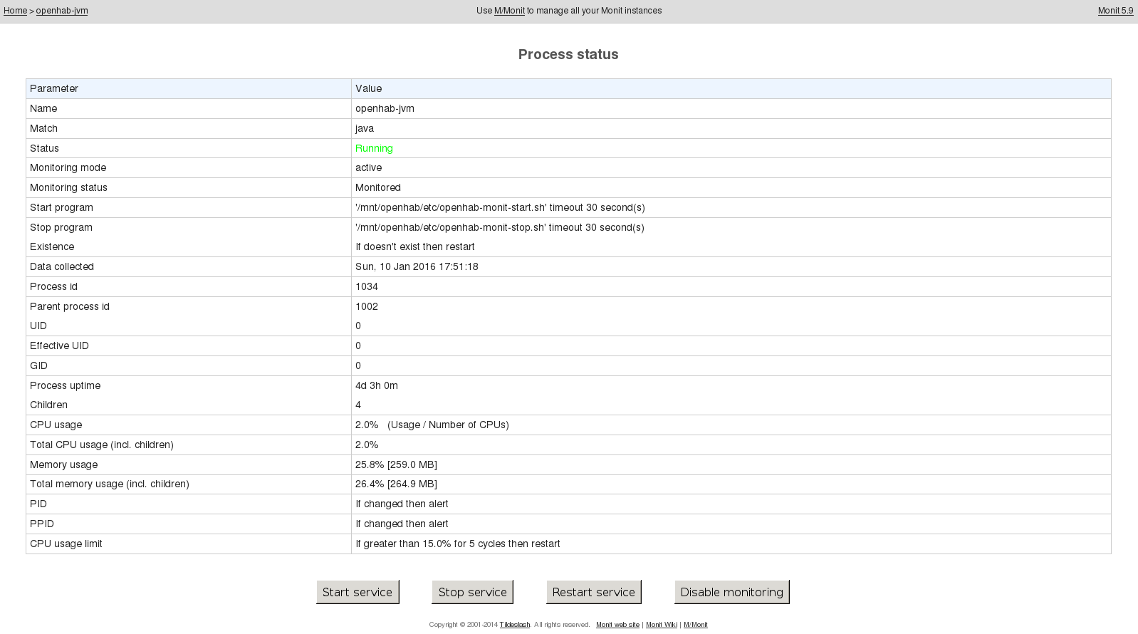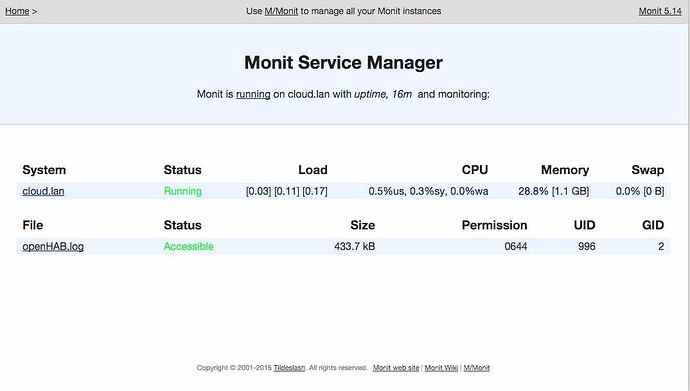 Yep, there’s nothing like JMX for getting some of the under-the-hood information on the OpenHAB JVM, but there’s nothing like Monit to kick it when it misbehaves!
