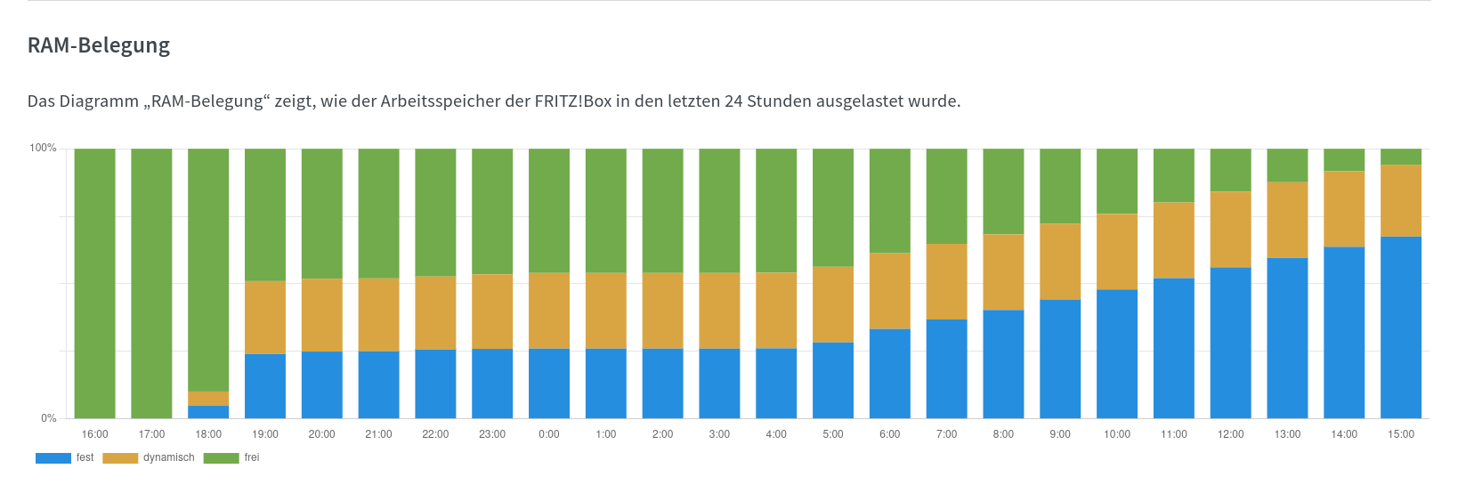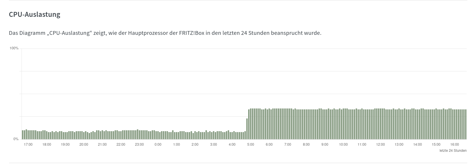 In the FritzBox itself – in my case a 7590 with firmware 8.20 – you can see in the statistics page that the CPU load increases from approx. 10% to 30% and more after a longer period of time.