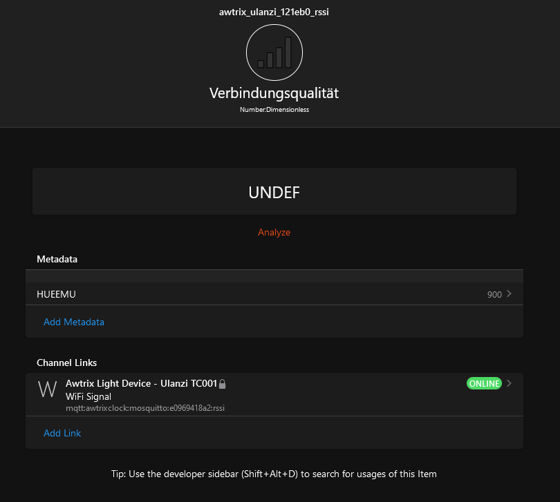 This is a binding to control an Ulanzi clock (Ulanzi TC001 | Smart Pixel Clock for Everyday Use) flashed with the custom Awtrix 3 firmware. This binding may also be used to control other devices (e.g. self-built) that use the same firmware.