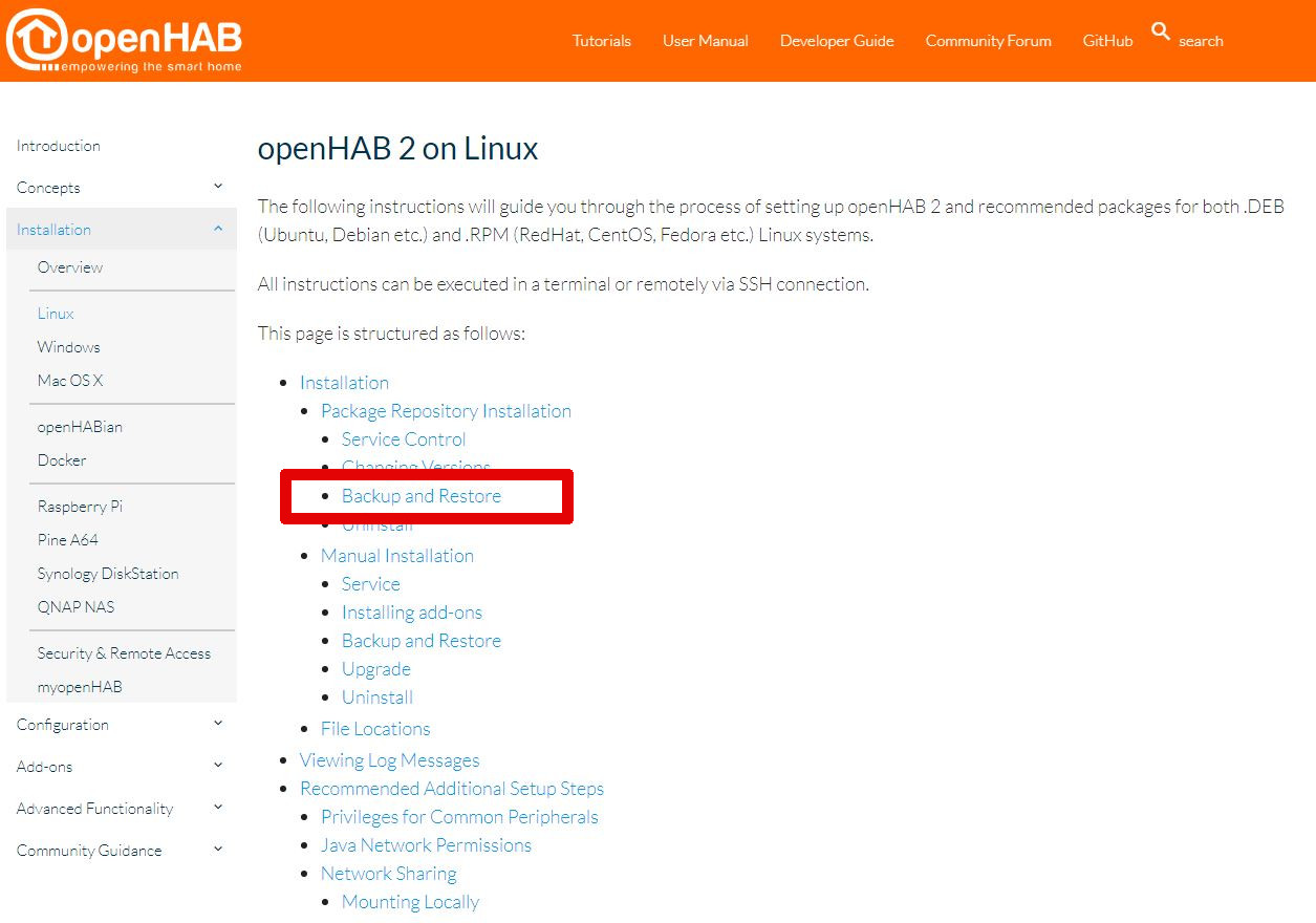 *Note: This will not backup the runtime folders. If you’re trying to repair openHAB, it’s best to download a new instance, and then try the restore script to load your configuration.