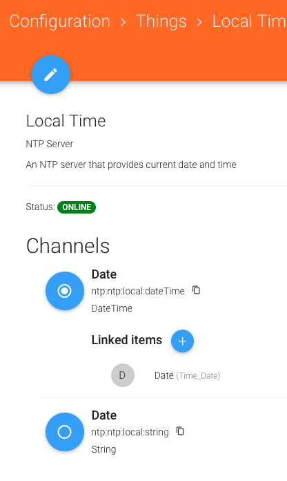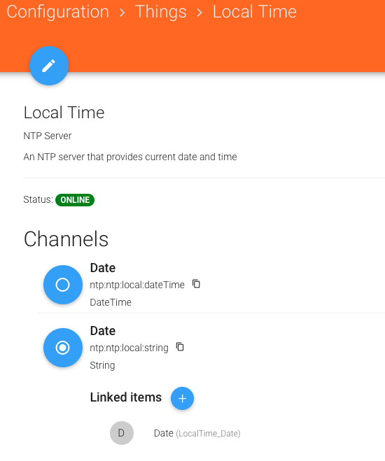 First I wanna Add Date and Time to the UI so I installed the NTP Binding, and I Add in Paper Ui a Thing