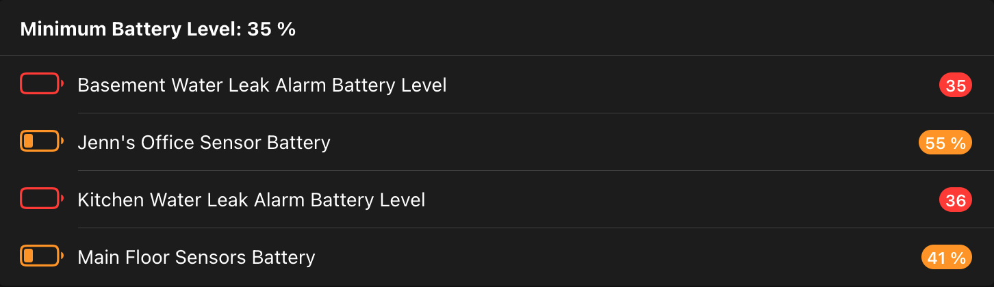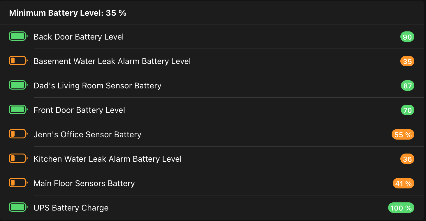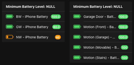 A dynamic standalone widget that will present the minimum battery level of all your batteries along with each individual battery’s level as a separate row in a list.