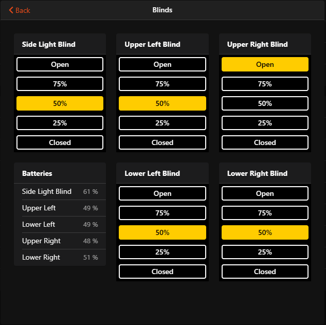 Have 6 Somfy battery operated blinds (Li-ion). Got them in May/June timeframe last year and they’re controlled thru OH and RFXTRX. They range in size from 1.8m wide to 2.7m wide.