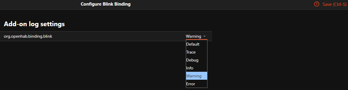 I’m sure you know this but for the benefit of other/future readers, enabling TRACE would be done by using the openhab-cli (or ssh to the karaf console via ssh -p 8101 openhab@localhost) and enter the command: log:set TRACE org.openhab.binding.blink, and then watch the log file potentially located at /var/log/openhab/openhab.log (could be different depending on how you installed, or if you’re on windows). Revert to less verbose logging via log:set INFO org.openhab.binding.blink or log:set WARN org.openhab.binding.blink