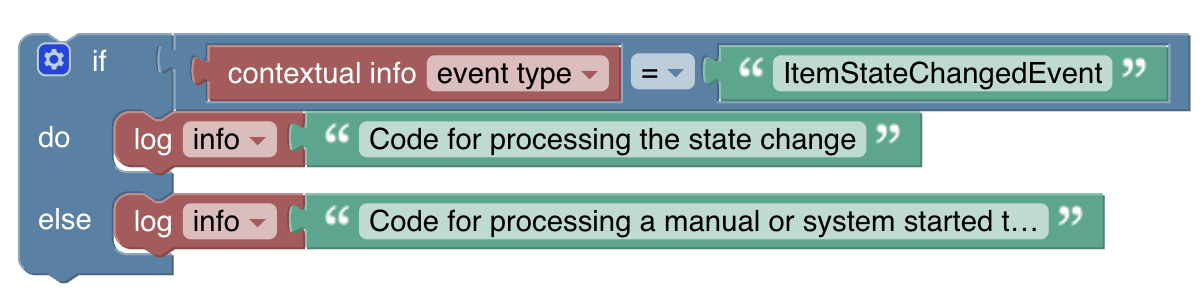 In general: All the other contextual item blocks (triggering item, triggered channel…) already return undefined (It’s just the toString-command that’s included in the block (which is fine) that creates the error). For example the first one always works and returns undefined and the second (as it’s got the toString) breaks if no command available.