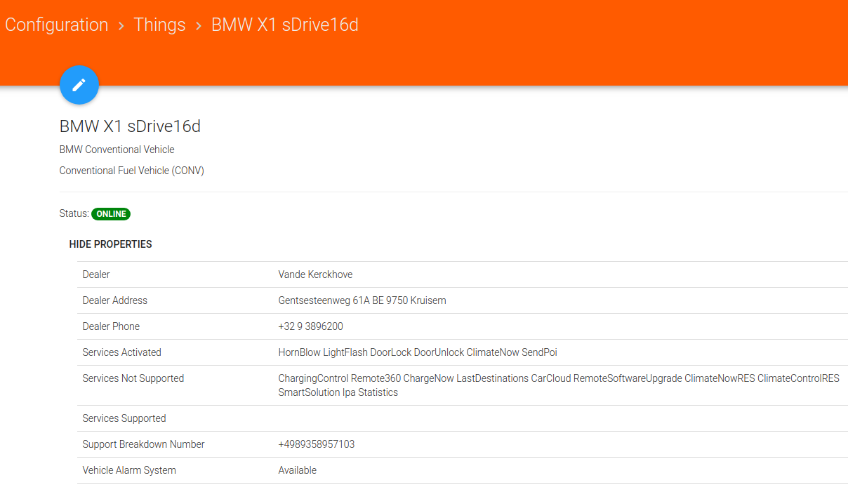 2020-09-28 15:18:01.722 [WARN ] [rive.internal.handler.VehicleHandler] - ###### BMW ConnectedDrive Binding - Vehicle Troubleshoot Fingerprint Data - END ######```