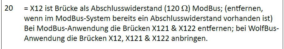 “X12 is the rider termination resistor (120 W) ModBus (remove it if the termination resistor has already been inserted in the ModBus system).
