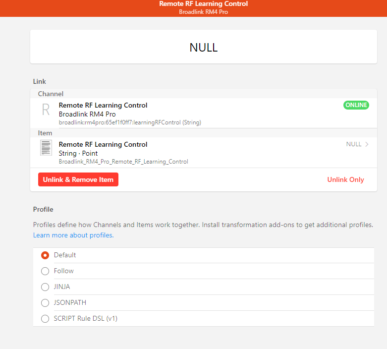 @AntonJansen I accidentally tried to add the RM4 Pro as a thing using the Broadlink Binding plugin from the add-on store. It might be helpful for future users to clearly write in your documentation that we need to manually add the JAR file into the addons folder, and not install the official Broadlink binding currently available on the add-on store.