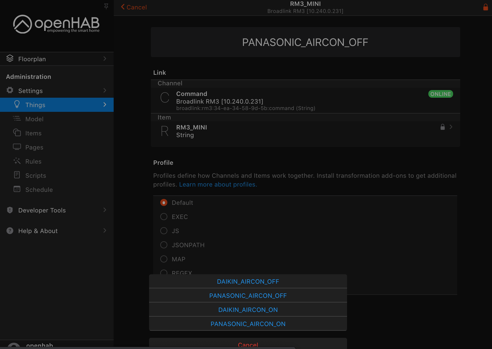 More interestingly for the wider Broadlink audience, the binding is edging closer to getting into the openHAB 3.1 codebase, and the latest release that I’ve just published (3.1.M5.2) has a new feature suggested by @matt1 that you might like.