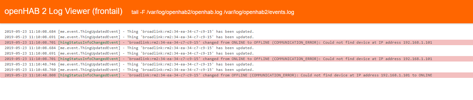 2019-05-23 06:50:23.515 [TRACE] [dlink.handler.BroadlinkRemoteHandler] - rm3:34-ea-34-51-2d-bc[^]: updateItemStatus; checking host availability at 192.168.1.107