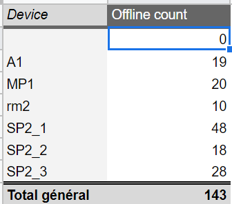 To summarize, in this google sheets, all the offline status are logged since 24 hours