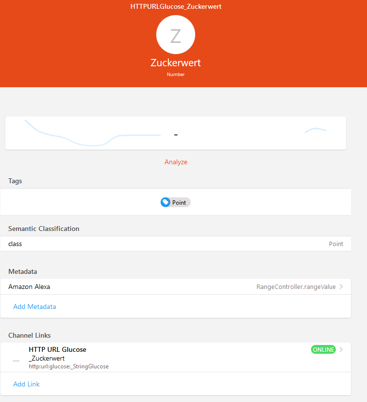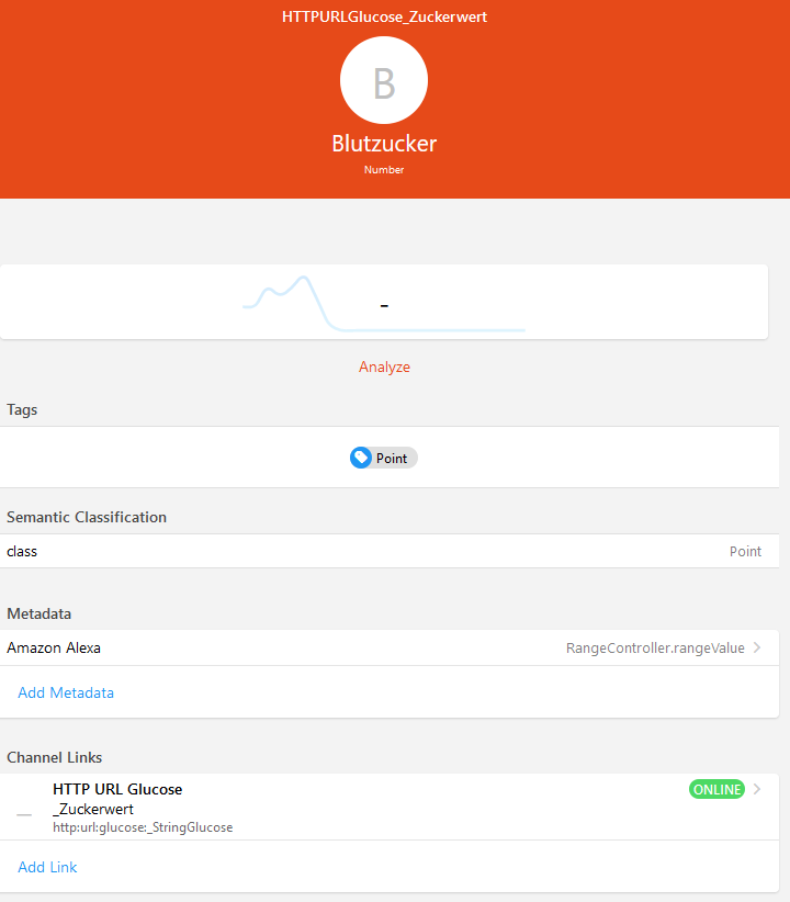I renamed my Item. Now it’s called “Blutzucker” and is knows in the Alexa-App under that name. I also removed the friendly name.