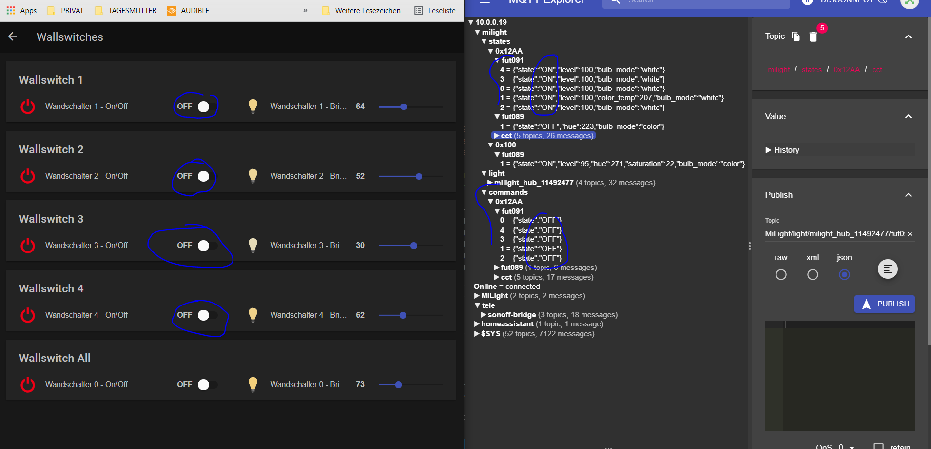 The MQTT status is not updated in openhab and in the status section in mqtt in case I change the values via a connected wall switch.