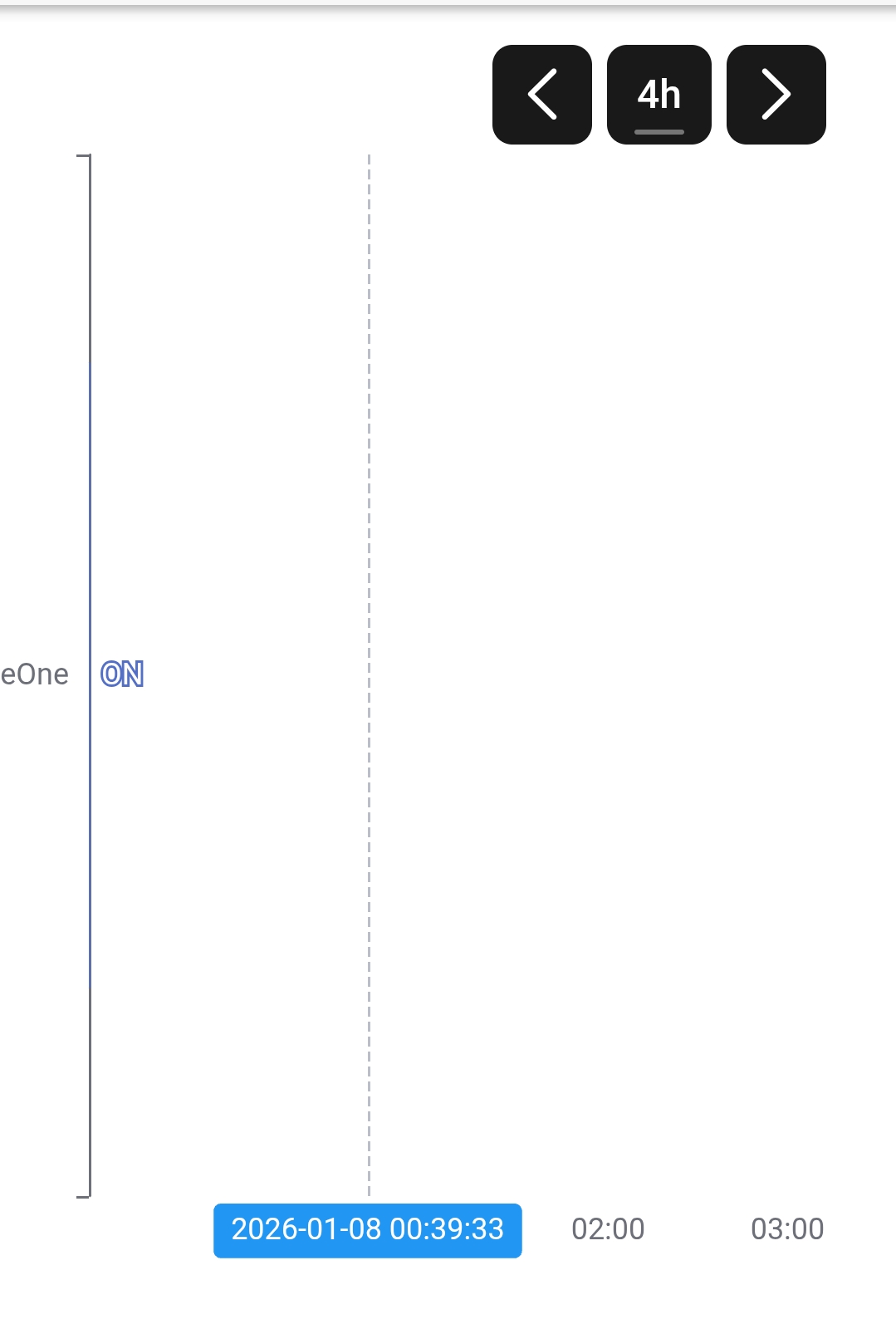 You are moving mouse over a chart that has no values/data. Again, what would you expect? If you have no persistence for this item (e.g. rrd4j every minute), then I would expect exactly what I see in your screenshot.