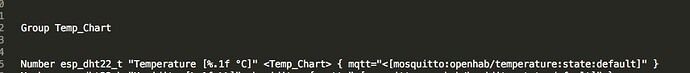Check to folder “/var/lib/openhab/persistence/rrd4j”, delete all *.rrd files (you should have only “esp_dht22_t.rrd”, but delete them all). rrd4j is known to have problems when changing the setup. Then wait some minutes and check the logging if values are persisted.