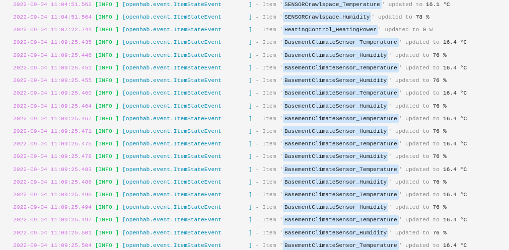 Another thing I could mention is that each update of the temperature and humidity is updated tons of times with the same value. I counted around 75 updates within less than a second: