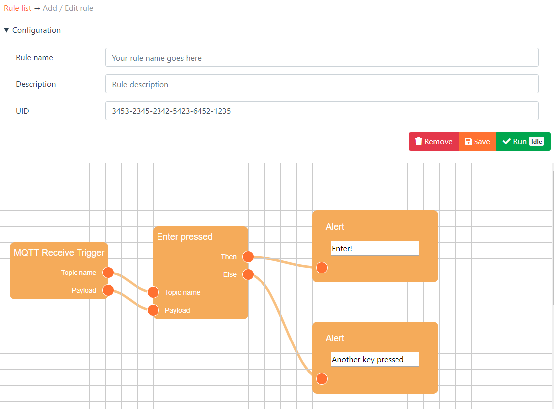- the ability to build Rules a la NodeRed for those who are more GUI oriented, very little need to actually “code” Rules for most simple cases. And for the complex cases, there may be a library that can be used.