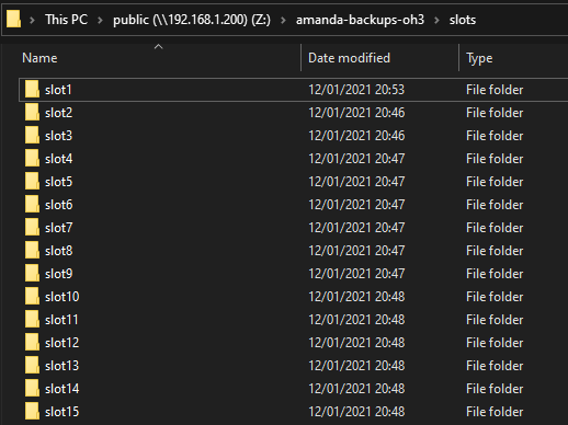 tpchanger "chg-disk:/mnt/nas/amanda-backups-oh3/slots"
