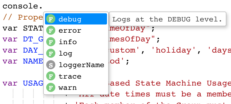 Notice the actual JS code here just a few lines of JS code. The rest is defining the triggers and rules proforma. The average lines of code for my non-templated Script Actions and Script Conditions is around 10, maybe less. A debugger would just get in the way for something so short.