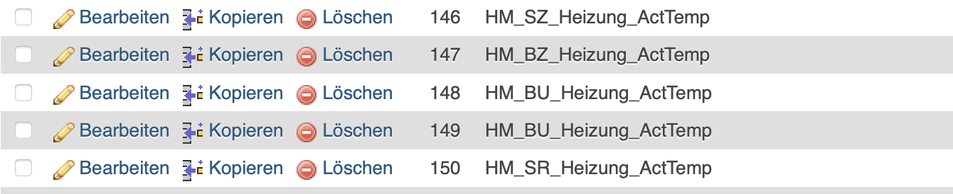 In the existing database are tabeles named by their item, not their item-id thats stored in the table “items”.